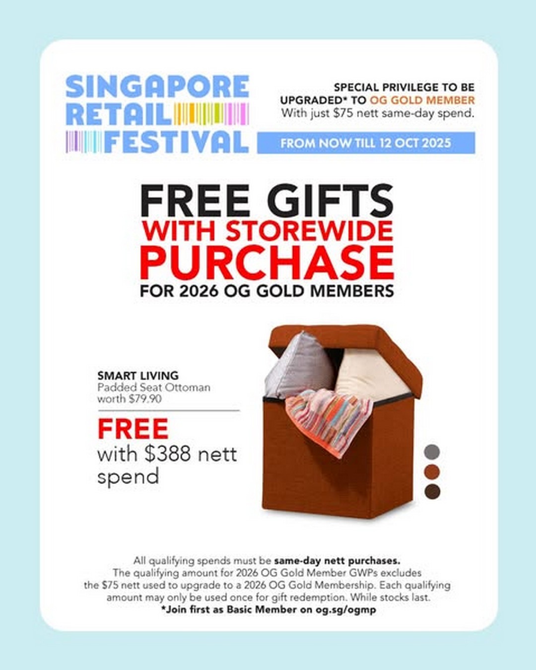 To sign up, shoppers will first need to register as a Basic Member through og.sg/ogmp. Once that’s done, spending $75 nett in-store will automatically upgrade their membership to OG Gold 2026, valid until 30 September 2026.