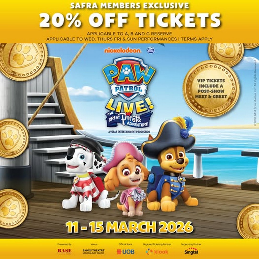 For SAFRA members with young PAW Patrol fans at home, this is a practical opportunity to turn an ordinary day into something memorable. Instead of another routine weekend activity, they can give their children the excitement of live theatre, pirate adventures and heroic pups saving the celebration.