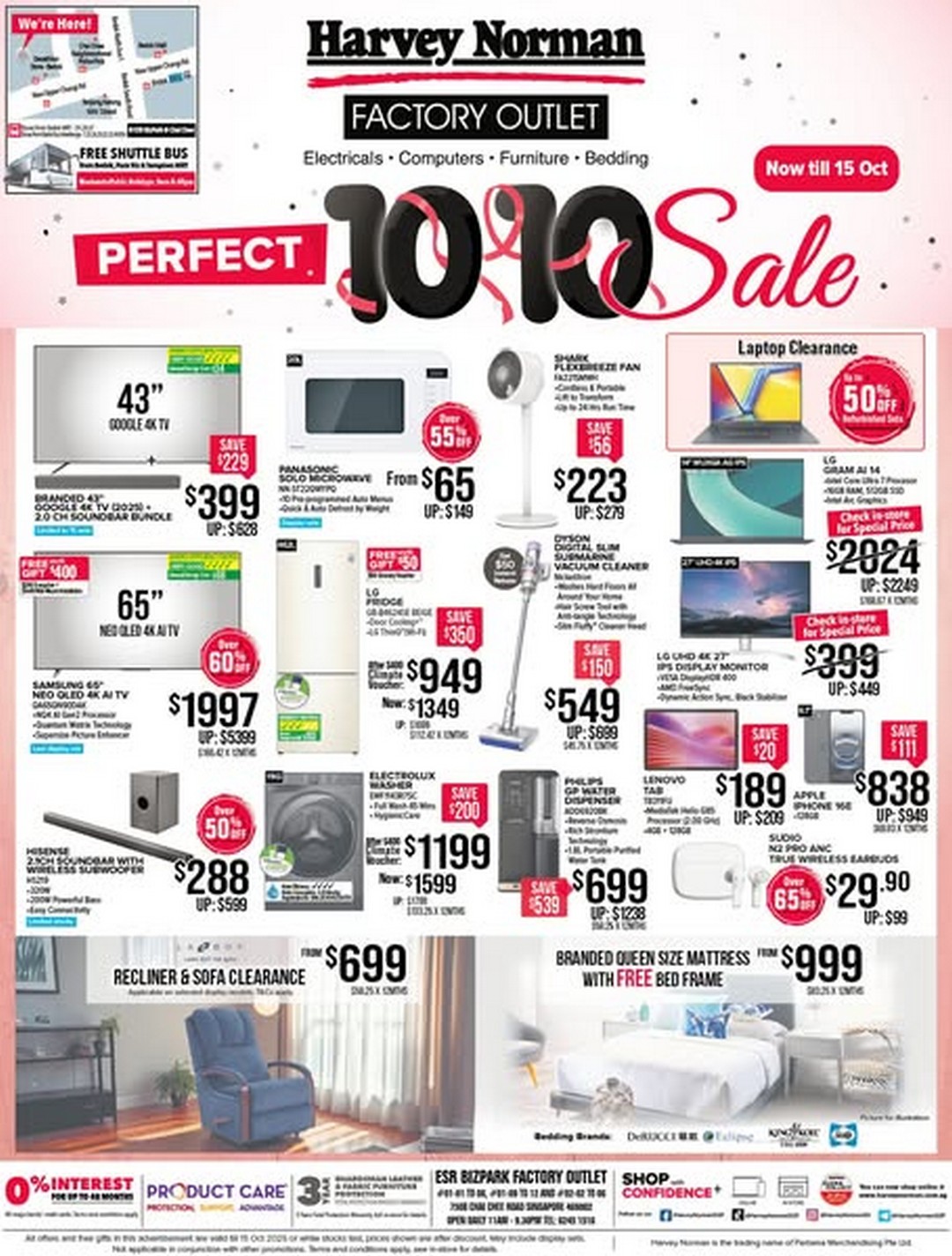 And that’s not all—Harvey Norman’s Factory Outlet Perfect 10.10 Sale continues till 15 October 2025, extending the savings for those who want even more incredible deals. Whether you’re setting up a new home or simply looking to replace a few old items, this sale offers something for everyone.
