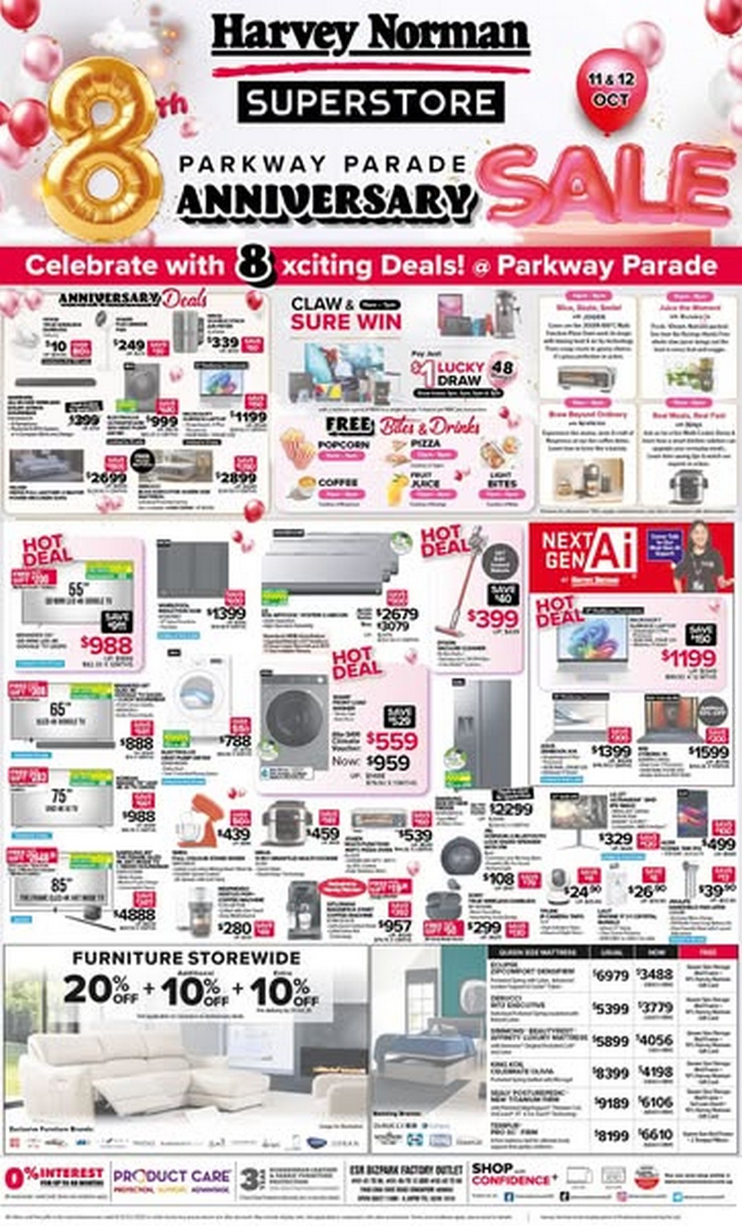 Harvey Norman isn’t stopping at sales alone—they’re turning their Parkway Parade outlet into a full celebration on 11 and 12 October 2025 to mark its 8th anniversary. It’s not just about shopping; it’s a weekend experience filled with excitement, entertainment, and irresistible offers.