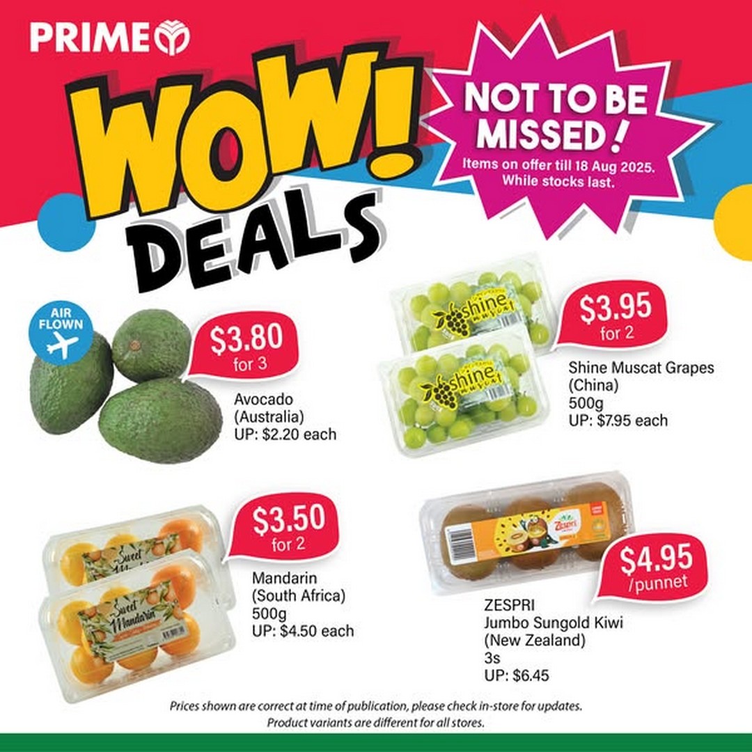 From now till 18 August 2025, Prime Supermarket is running its latest round of WOW!DEALS — a selection of special offers on fresh produce, pantry staples, and household necessities. Whether it’s for stocking up on essentials, trying something new in the kitchen, or simply making the most out of every dollar, this is a promotion worth marking in the calendar.