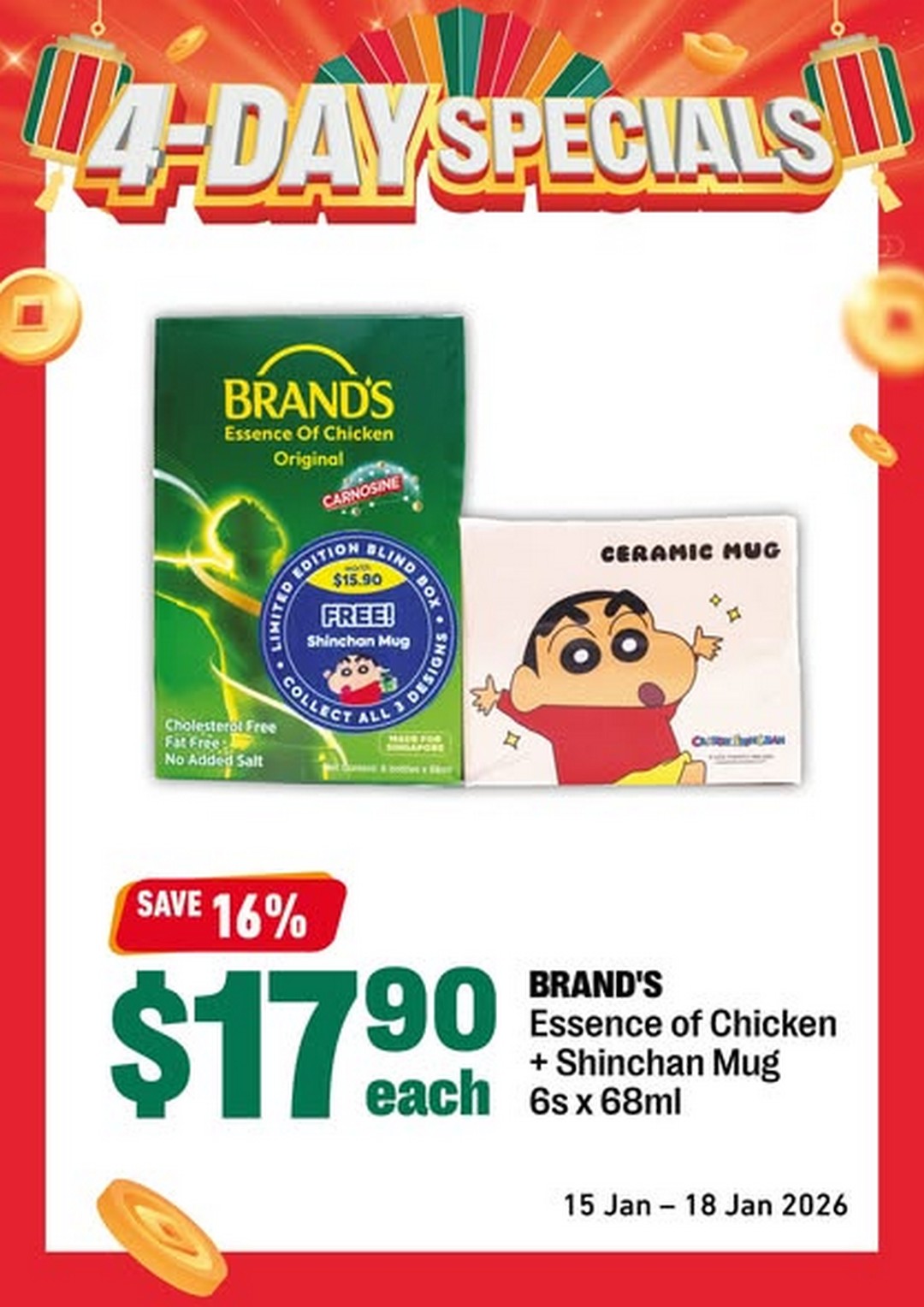 For those seeking something that mixes a little fun with functionality, 7-Eleven has included a very appealing set in this promotion: Brand’s Essence of Chicken + Shinchan Mug 6s x 68ml for $17.90 each. Not only do shoppers get the health benefits of the essence drink, but they also receive a collectible Shinchan mug – a small but delightful bonus for fans of the popular anime. This bundle makes the promotion particularly attractive for collectors or anyone who appreciates a little novelty with their daily supplements.