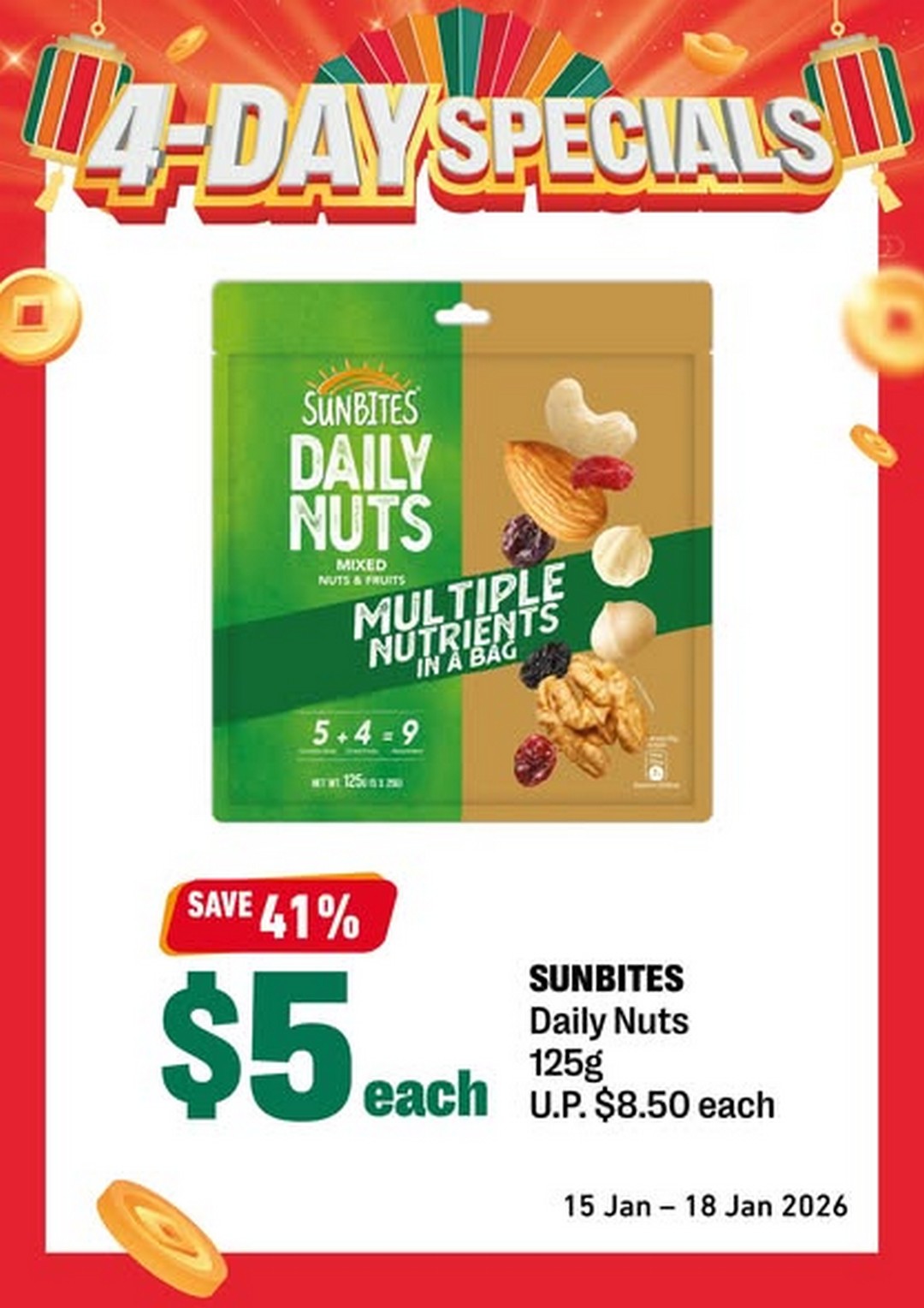 If beverages of a different kind are more their style, 7-Eleven has thought of that too. For beer enthusiasts, Guinness Draught or Extra Stout 440ml / 500ml is on offer at 2 for $9.90, down from the usual $7.80 each. Whether it’s a casual evening at home or a small gathering with friends, this is a rare opportunity to enjoy premium stout at a fraction of the price. For a healthier snack option, Sunbites Daily Nuts 125g is available at $5 each, marked down from $8.50. This crunchy, nutrient-packed snack is perfect for on-the-go munching or for keeping at the office to avoid unhealthy snacking.