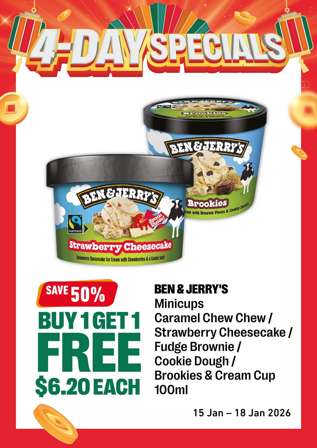Of course, no promotion at 7-Eleven would be complete without an indulgent treat. Ice cream lovers are in for a real deal: Ben & Jerry’s Minicups 100ml, including flavours like Caramel Chew Chew, Strawberry Cheesecake, Fudge Brownie, Cookie Dough, and Brookies & Cream Cup, are available on a Buy 1 Get 1 Free offer at $6.20 each. This is an ideal chance to treat themselves or a friend without overspending, and with the variety of flavours, there’s something for everyone to enjoy.