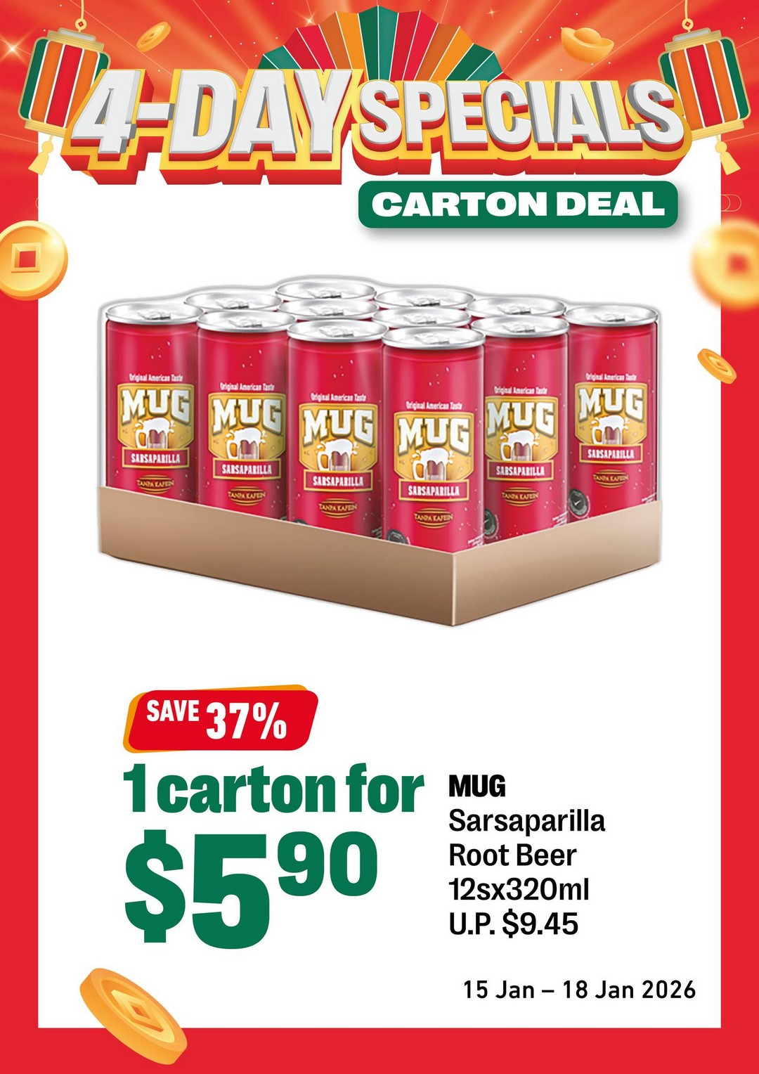 Soft drink enthusiasts are not left out either. Shoppers can grab a whole carton of Mug Sarsaparilla Root Beer 12s x 320ml or 7-Up Lemon & Lime 12s x 320ml for only $5.90 each, marked down from $9.45. These drinks are perfect for family gatherings, small parties, or simply to keep a refreshing supply at home without constantly visiting the store.