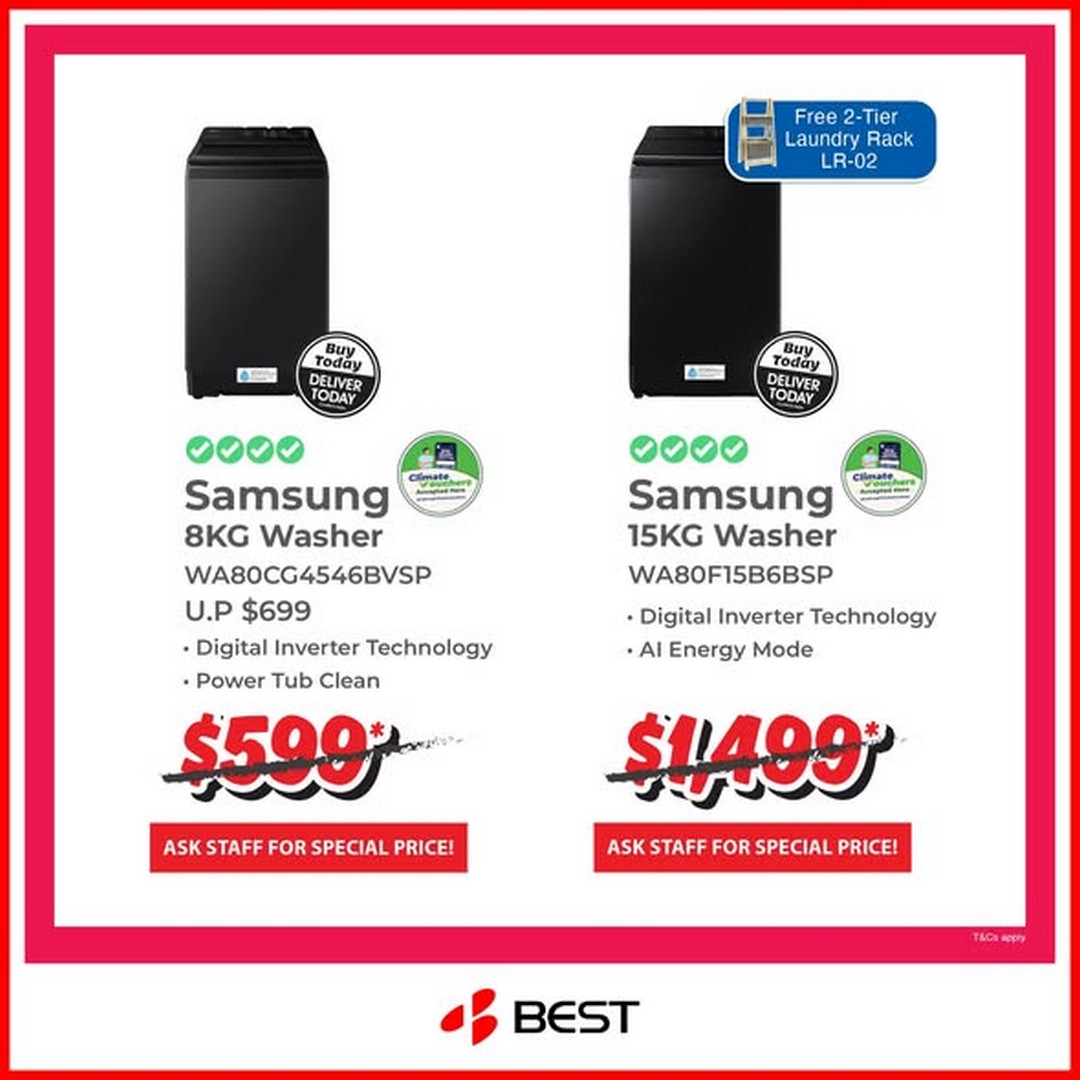 What makes this BEST Denki Singapore x Samsung Atrium Fair appealing is its focus on practicality. Rather than overwhelming shoppers with too many brands or unrelated categories, the fair centres around Samsung’s home and electrical range. That usually includes kitchen appliances, laundry solutions, and smart home devices designed to make daily living more efficient.
