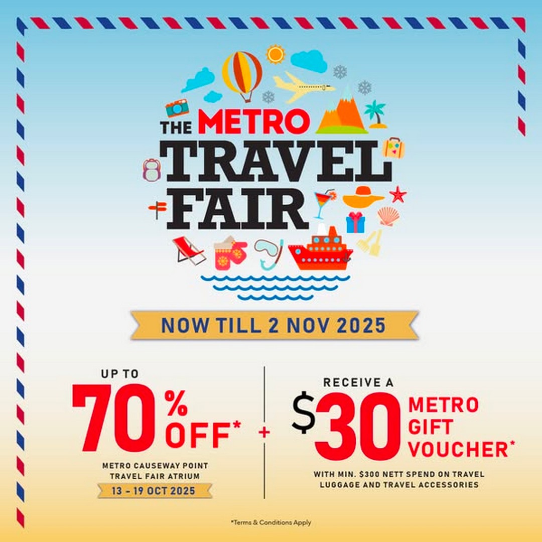 If you’ve been waiting for the perfect time to upgrade your travel essentials before your next holiday, METRO Singapore has just rolled out a deal that’s almost too good to miss. From now till 2 November 2025, the METRO Travel Fair is happening at Metro Paragon and Metro Causeway Point, featuring irresistible discounts, exciting bundle offers, and exclusive gift vouchers that make shopping for your next adventure a real delight.