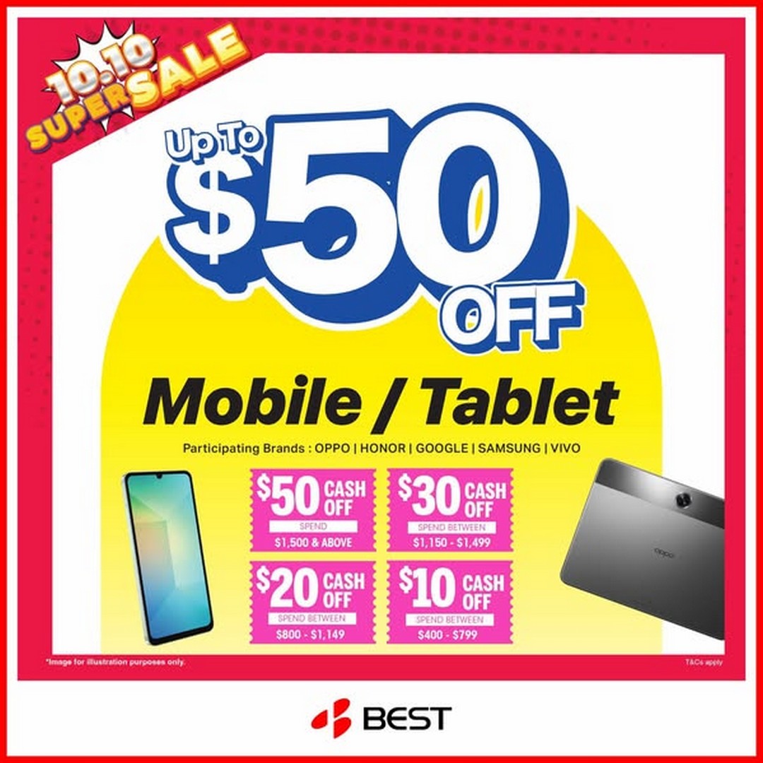 If you have been thinking of upgrading your phone, getting a new tablet, or refreshing your IT accessories, this might be one of the best times to do it. BEST Denki Singapore is continuing their 10.10 Super Sale, and it is still going strong. Running from now till 20 October 2025, this sale is packed with tech bargains that are hard to resist, offering up to $50 off on selected models.