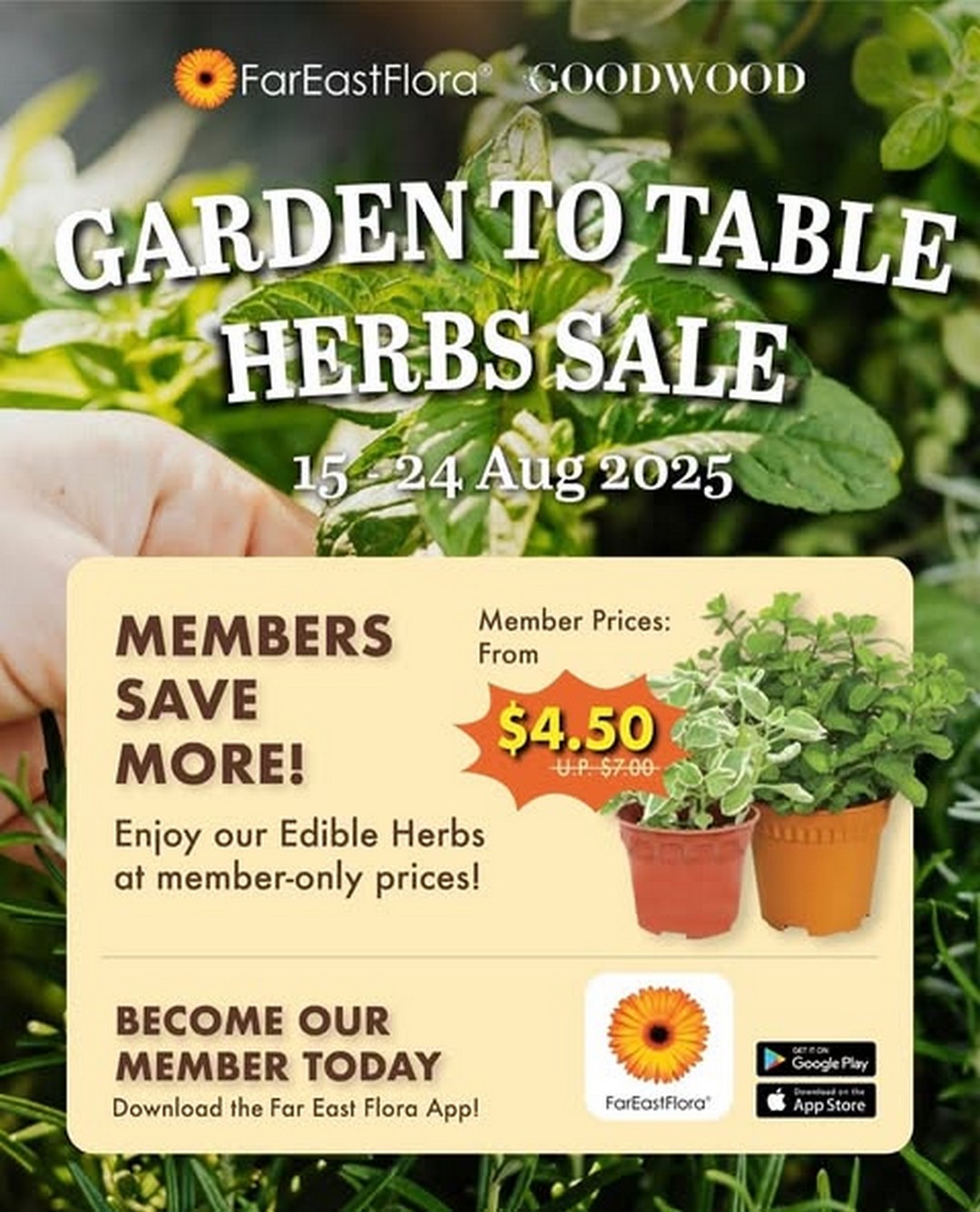 If you have ever dreamed of adding a touch of freshness to your cooking straight from your own garden, then this is the perfect opportunity. Far East Flora is running their Garden to Table Herb Sale, and it is exactly the kind of deal that makes any home cook, gardening enthusiast, or flavour lover excited. From now till 24 August 2025, members can enjoy fresh, aromatic herbs starting from just $4.50 (usual price $7.00). That’s not just a discount – it’s an invitation to bring more life and taste to your kitchen.