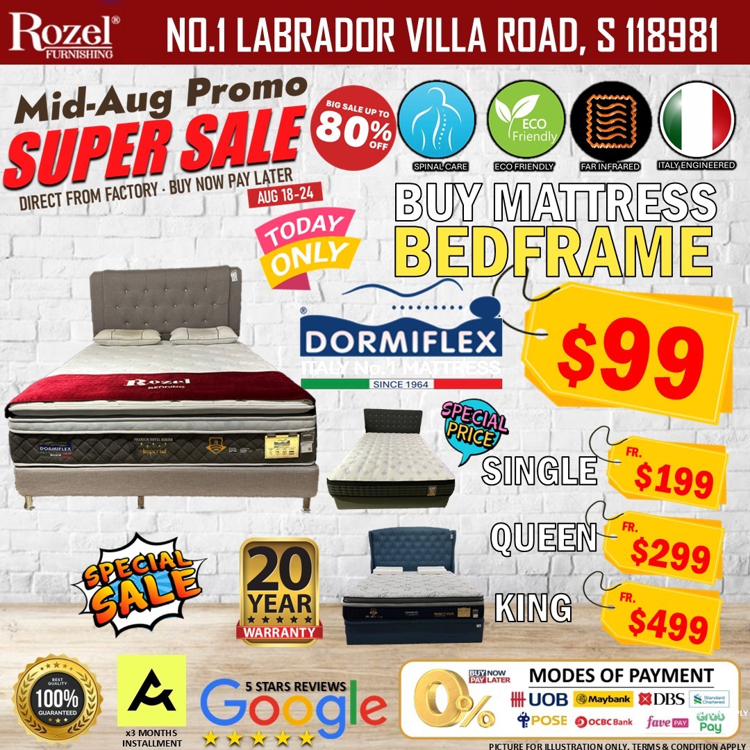 But the sale goes beyond furniture. Rozel has also put together a range of exclusive mattress packages that blend comfort and affordability. For anyone who values a good night’s sleep – and let’s be honest, who doesn’t – these packages are an absolute steal. For example, Italy’s No.1 Dormiflex mattress is featured across several bundles, including: