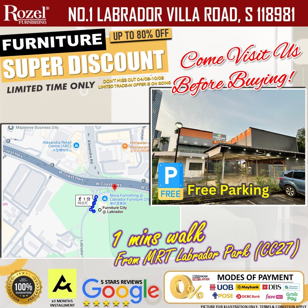 The sale is ongoing now and runs until 24 August 2025 at Rozel’s Labrador showroom. Doors open daily from 11:30 am to 9:00 pm, giving shoppers plenty of time to drop by. Located at 1 Labrador Villa Road, the venue is easy to access, and with the added parking and transport perks, it’s designed to be as convenient as possible.