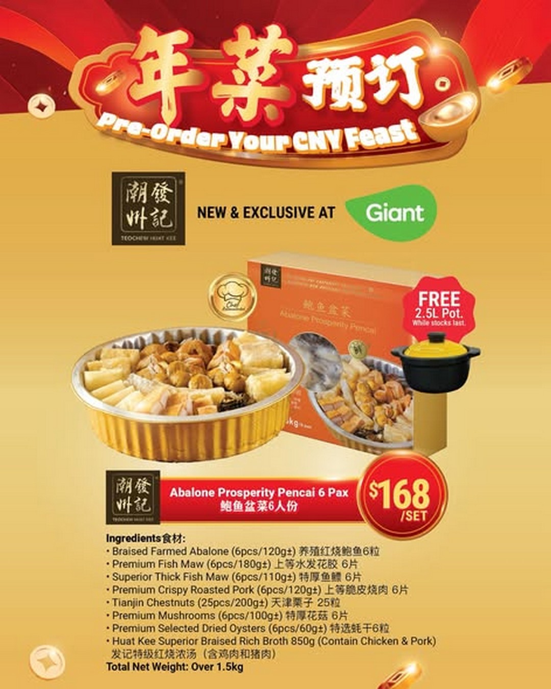 This is where Giant Singapore steps in with a timely and thoughtful solution. Giant Singapore has launched their CNY Fortune Feast Pre-Order, making it easier for families to enjoy a proper festive spread without the stress of cooking everything themselves. This promotion is available now till 24 February 2026 and features a range of ready-to-eat Chinese New Year delicacies prepared in collaboration with Teochew Huat Kee, a well-known name associated with traditional and celebratory Chinese cuisine.