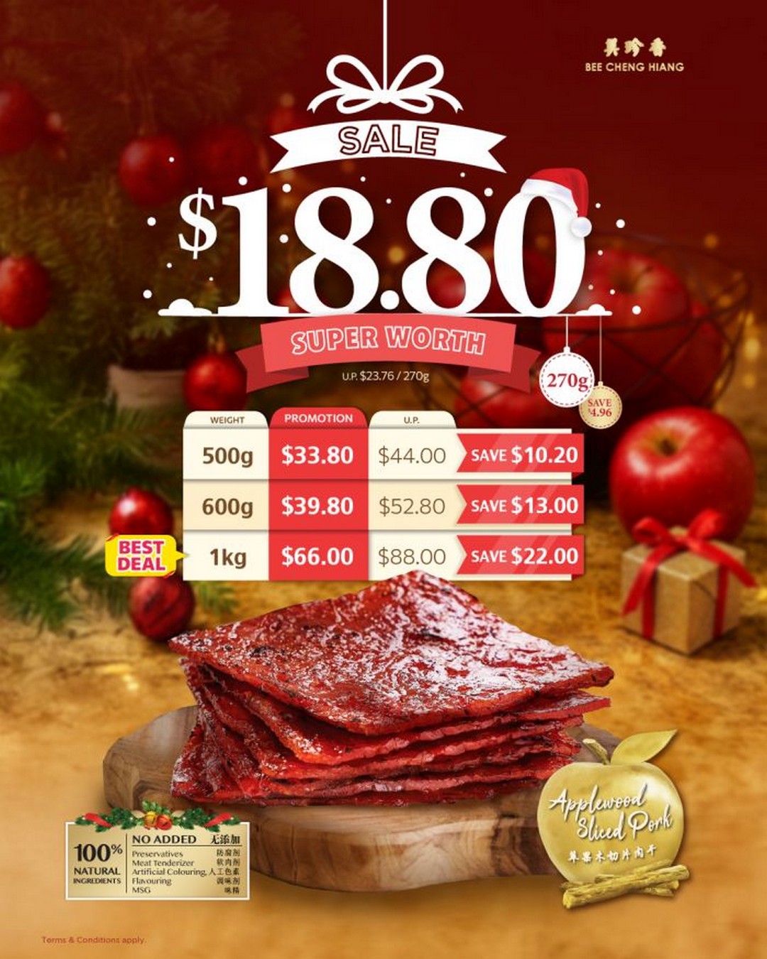For many Singaporeans, bakkwa is more than just a snack; it is a festive tradition. It evokes memories of family gatherings, late-night chats, and celebrations that span generations. By stocking up on Bee Cheng Hiang’s premium bakkwa, shoppers are not only enjoying a delectable treat but also participating in a cherished cultural practice. The Applewood Sliced Pork Bakkwa, with its juicy texture and sweet-savory balance, is particularly suited to sharing during Christmas parties, family reunions, or even as a special treat for oneself after a long day of festive preparations.