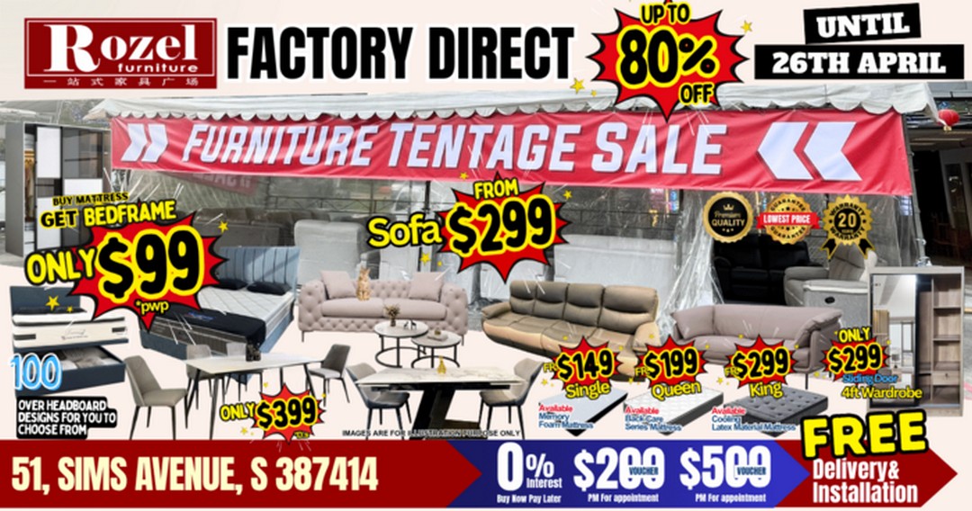 If there is ever a time to seriously consider giving your home a refresh without burning a hole in your wallet, this is one of those rare moments that deserves attention. The Rozel Factory-Direct Furniture Tentage Sale at 51 Sims Avenue is currently running and will only be around until 26 April 2026. For anyone in Singapore who has been planning to upgrade a sofa, replace a mattress, or even furnish an entire home, this is a sale event that stands out for both value and variety.