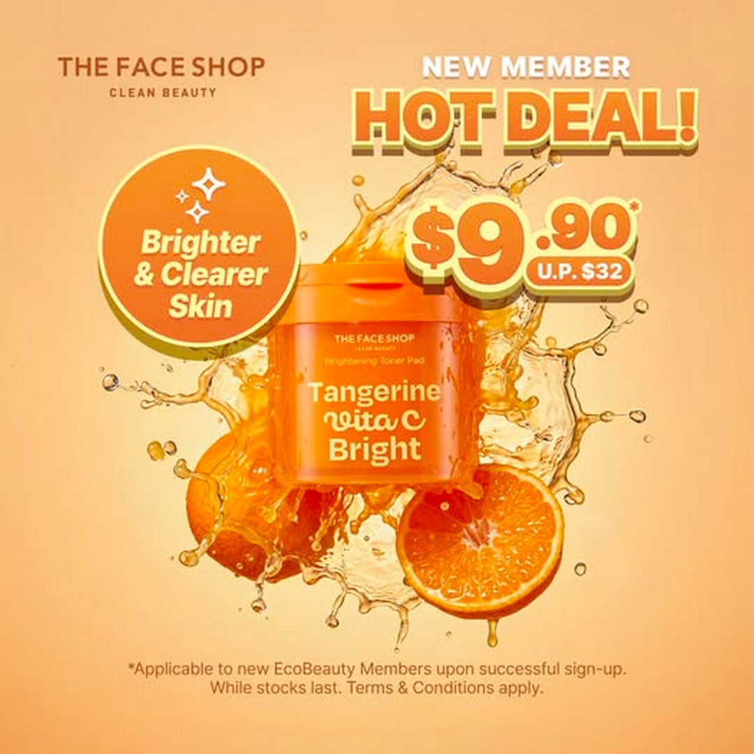 For those who are new to THE FACE SHOP in Singapore, signing up as an EcoBeauty Member at their Wisma Atria outlet (#B1-37/38) now comes with a fantastic perk. New members can get their hands on the Tangerine Vita C Bright Brightening Toner Pad 180ml for just $9.90, down from its usual price of $32. That’s a significant saving and a great way to start experimenting with their brightening products without a huge upfront investment.
