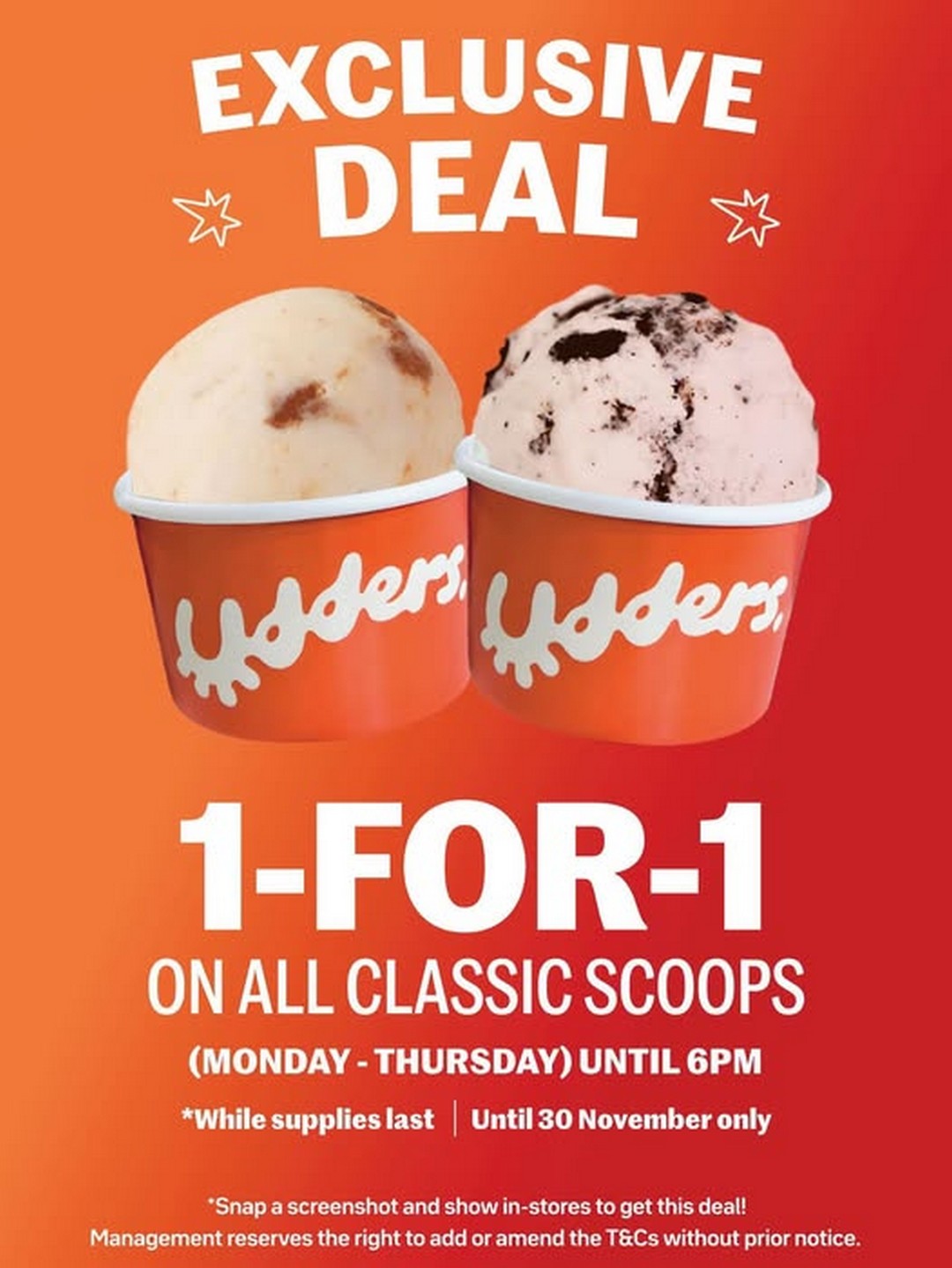 In a city that’s constantly buzzing, it’s nice to slow down for a moment of simple joy. A creamy scoop (or two) of your favourite ice cream can do just that. Whether you’re taking a break after work, catching up with friends, or simply rewarding yourself for getting through a busy day, this Udders deal is a great way to enjoy a bit of sweetness in your routine.