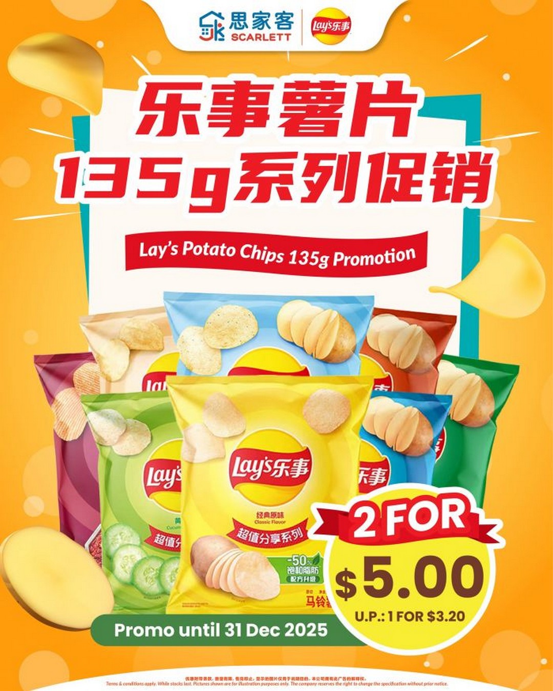 Lay’s has long been a favourite among snack lovers in Singapore, known for its satisfying crunch and variety of flavours. With this special offer, Scarlett is making it more convenient than ever to enjoy multiple packs at an unbeatable price. Normally priced at $3.20 per pack, purchasing two packs under this promotion saves a significant amount while giving customers the chance to explore different flavours.