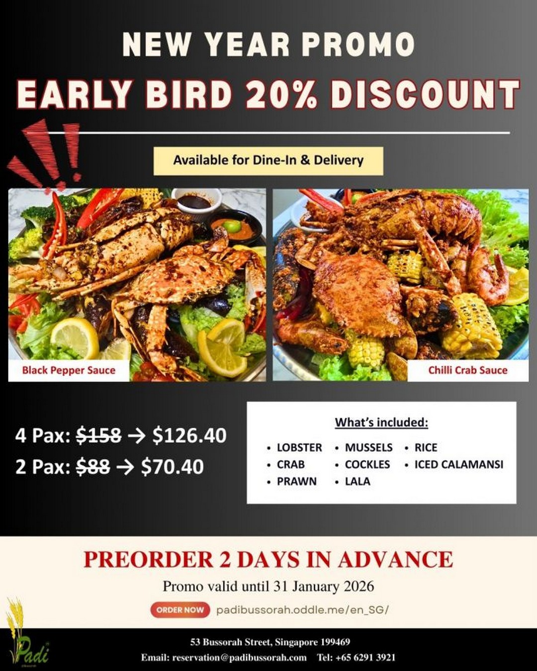 For anyone who enjoys seafood, appreciates clear and honest promotions, and wants a fuss-free way to host a satisfying meal, the Padi@Bussorah New Year Shellout Early Bird 20% Discount Promotion ticks all the right boxes. Planning ahead, choosing a preferred sauce, and securing the preorder are small steps that lead to a rewarding dining experience.