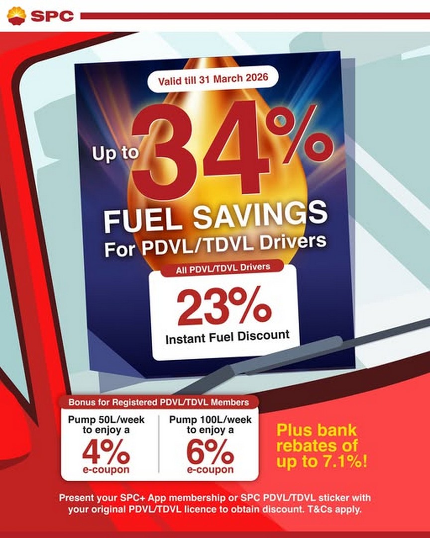 SPC Singapore has rolled out a valuable promotion specifically designed to help PDVL and TDVL drivers stretch their fuel budget further. Running now till 31 March 2026, this campaign offers drivers the chance to enjoy fuel savings of up to 34%, making every refill significantly lighter on the wallet.