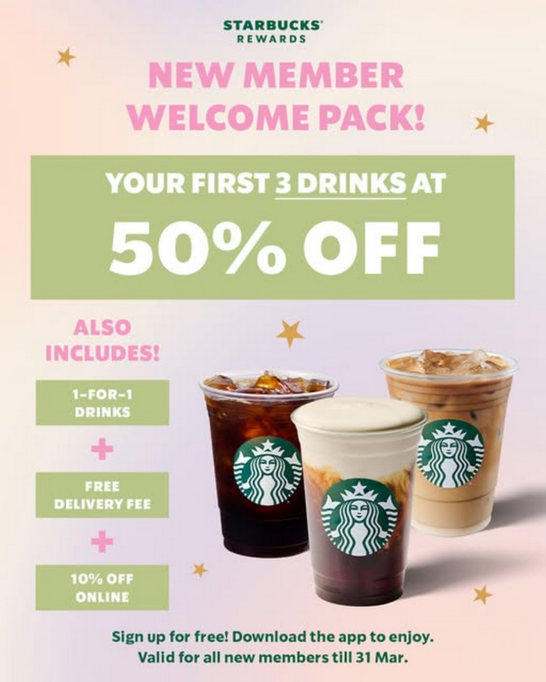 Now, Starbucks Singapore is giving new members a particularly attractive reason to join their loyalty programme. From now till 31 March 2026, anyone who signs up for Starbucks Rewards through the Starbucks Mobile App can enjoy 50% off their first three drinks, along with a welcome pack packed with additional perks.