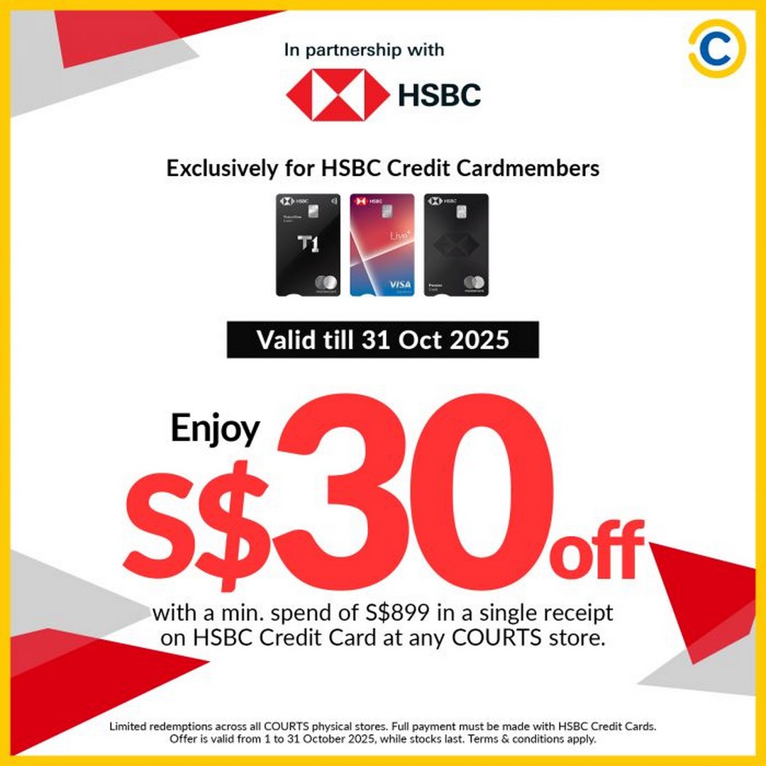 One of the most important things to keep in mind is that this offer has limited redemptions. COURTS and HSBC have capped the number of customers who can enjoy this $30 discount, so delaying might mean missing out entirely. With the promotion running till 31 October 2025, it’s tempting to assume there’s plenty of time, but in reality, these deals often see a surge of shoppers in the first few weeks.