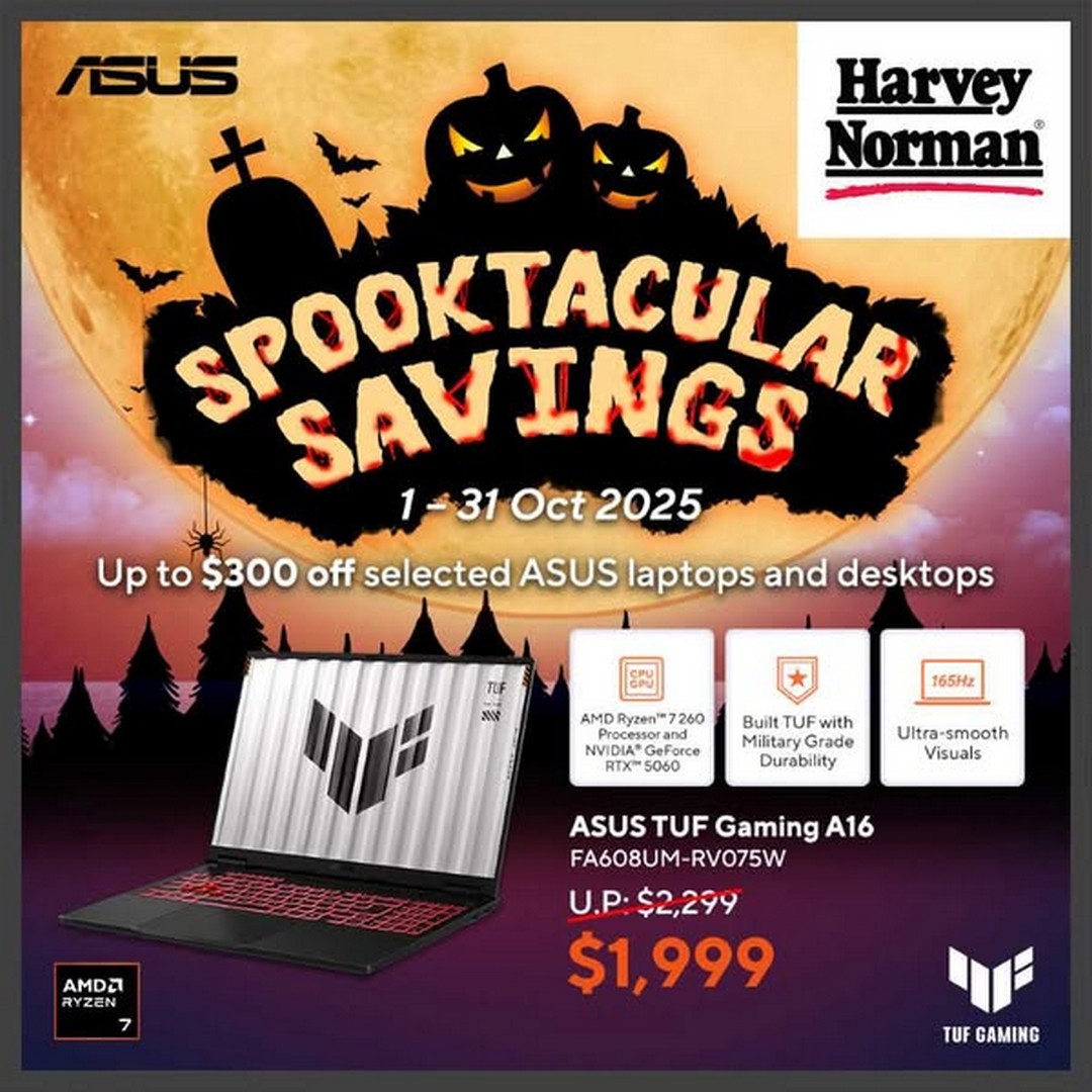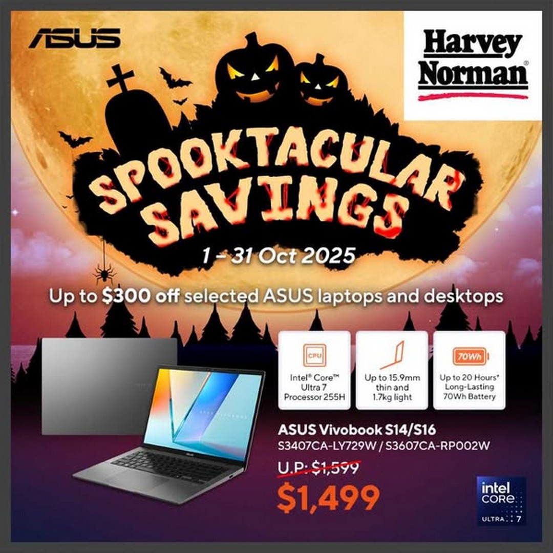 With savings of up to $900, a wide selection of models, and the convenience of online or in-store shopping, Harvey Norman Singapore’s ASUS Spooktacular Savings promotion is not to be missed. So, whether you’re looking to treat yourself or plan a thoughtful gift for someone special, this is an opportunity that ticks all the boxes: value, quality, and timing. Don’t let these spookily good deals vanish — take advantage today and enjoy a seamless upgrade to your tech life.