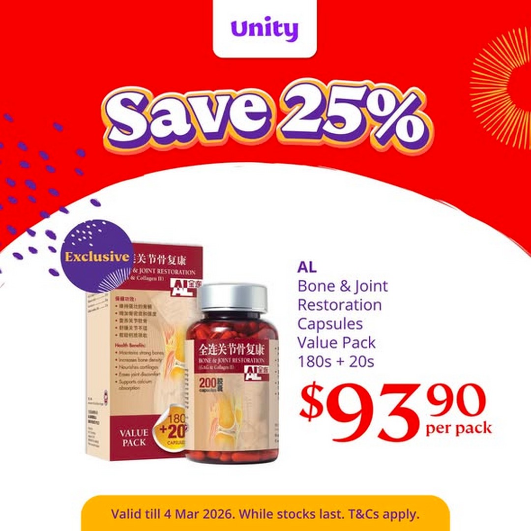[Exclusive] AL Bone & Joint Restoration Capsules Value Pack 180s + 20s – $93.90 per pack