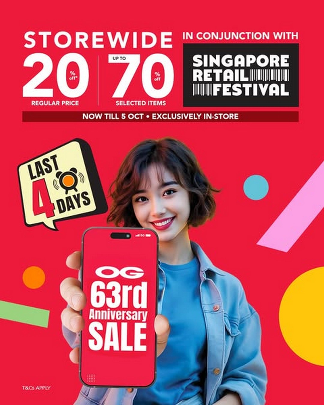 In summary, OG Singapore’s 63rd Anniversary Sale is more than just a discount event—it’s a celebration of decades of retail excellence and a chance for shoppers to enjoy exceptional value. With 20% off storewide, an exclusive opportunity to purchase the OG Gold Membership at a heavily reduced price, and the appeal of high-quality products across fashion, lifestyle, and accessories, this promotion caters to a wide audience. The limited timeframe creates a sense of urgency, the membership promises long-term benefits, and the shopping experience remains premium and enjoyable. There’s no better time to take advantage of this sale, whether for immediate purchases or for the year-long perks that come with the OG Gold Membership.