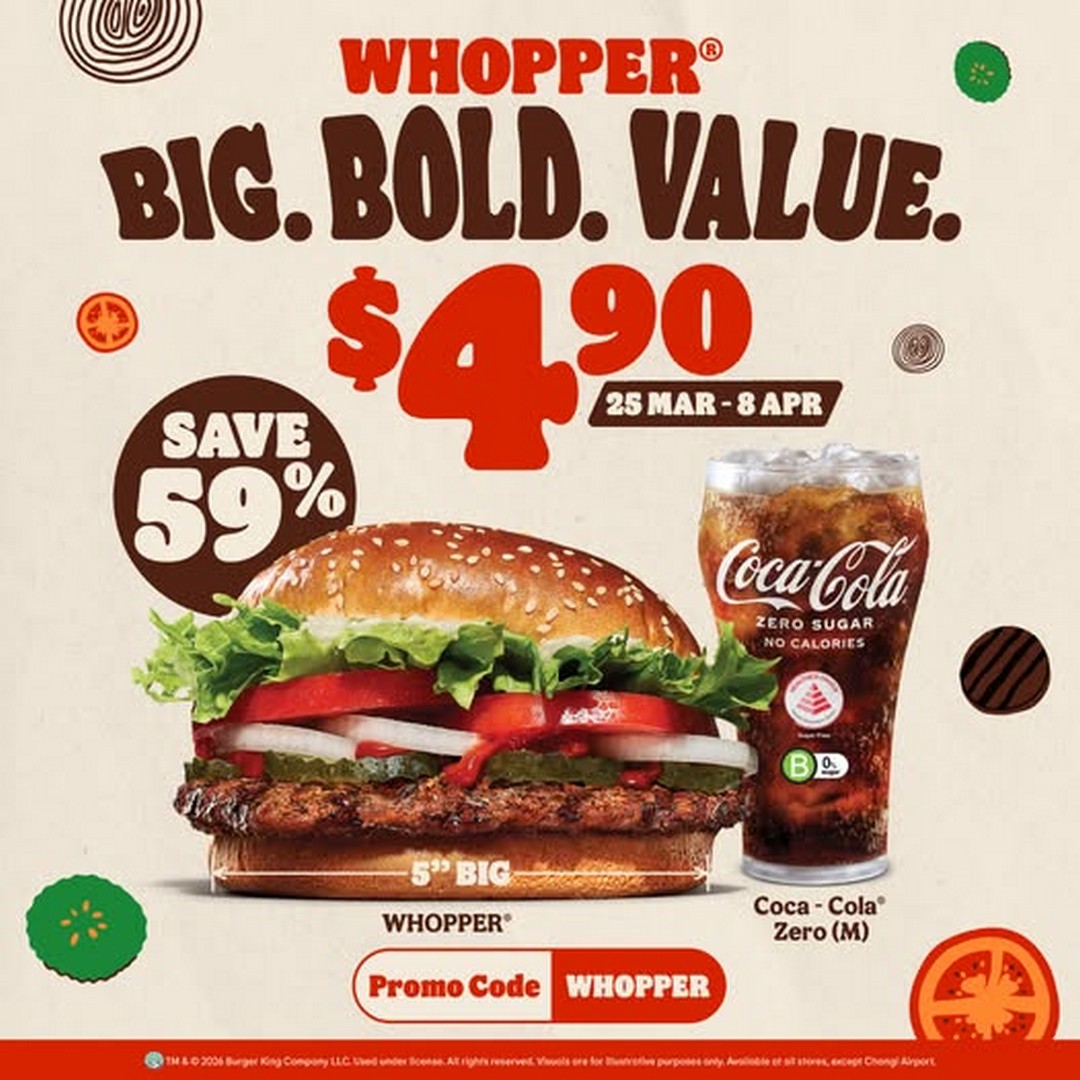 They should not wait until the last minute. With the offer valid only until 8 April 2026, it’s the perfect time to make a trip to their nearest Burger King, redeem the code, and savour one of Singapore’s favourite fast-food experiences. Remember to enter <WHOPPER> at the kiosk or through the BK App to secure this incredible deal.